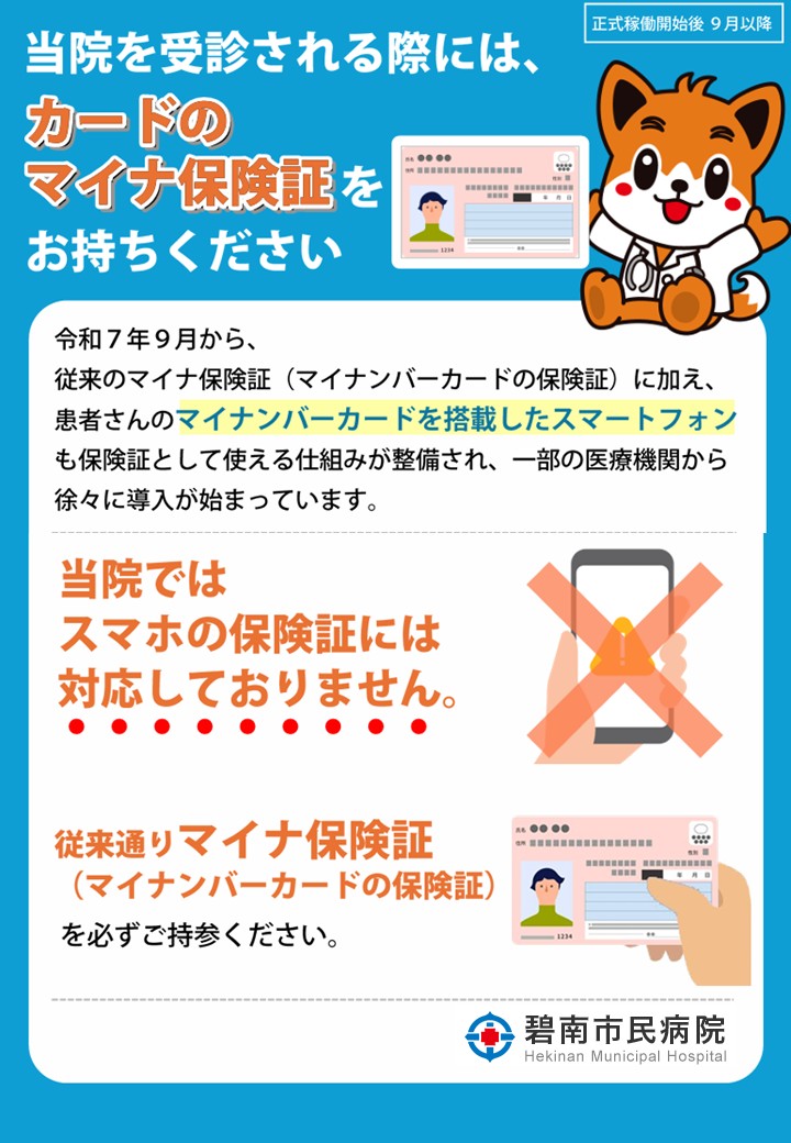 初診や再診時の受付前の保険証確認の際に、マイナンバーカードの利用を希望される方はお申し出ください。